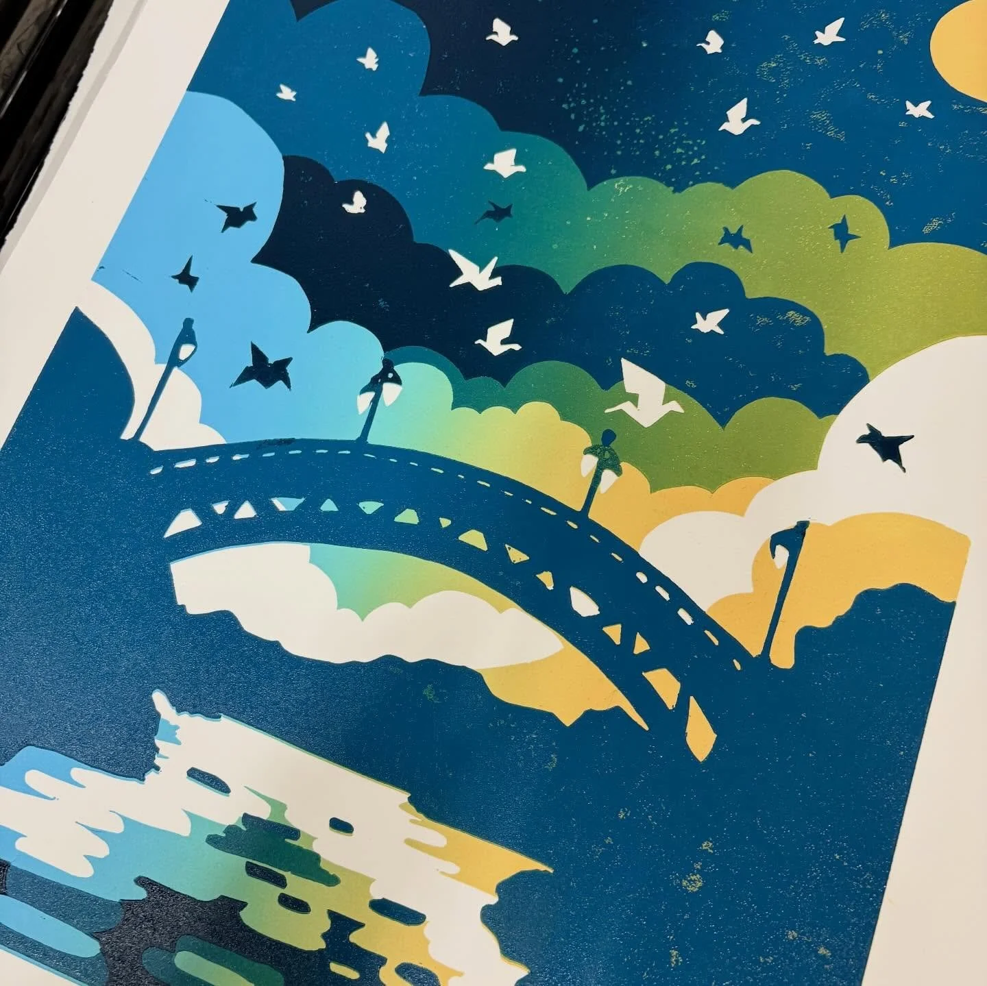Meet the self-proclaimed, scantily clad printmaker, Elizabeth Hall, more commonly known as Liz. With a robust background of over 15 years in digital product design, she has recently returned to the basics, embracing the tactile joy of getting her hands dirty—or rather, inky.